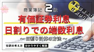 有価証券利息・端数利息について、日割りでの計算方法と仕訳をわかりやすく解説(商業簿記2級)決算整理仕訳や翌期首での再振替仕訳についても解説!