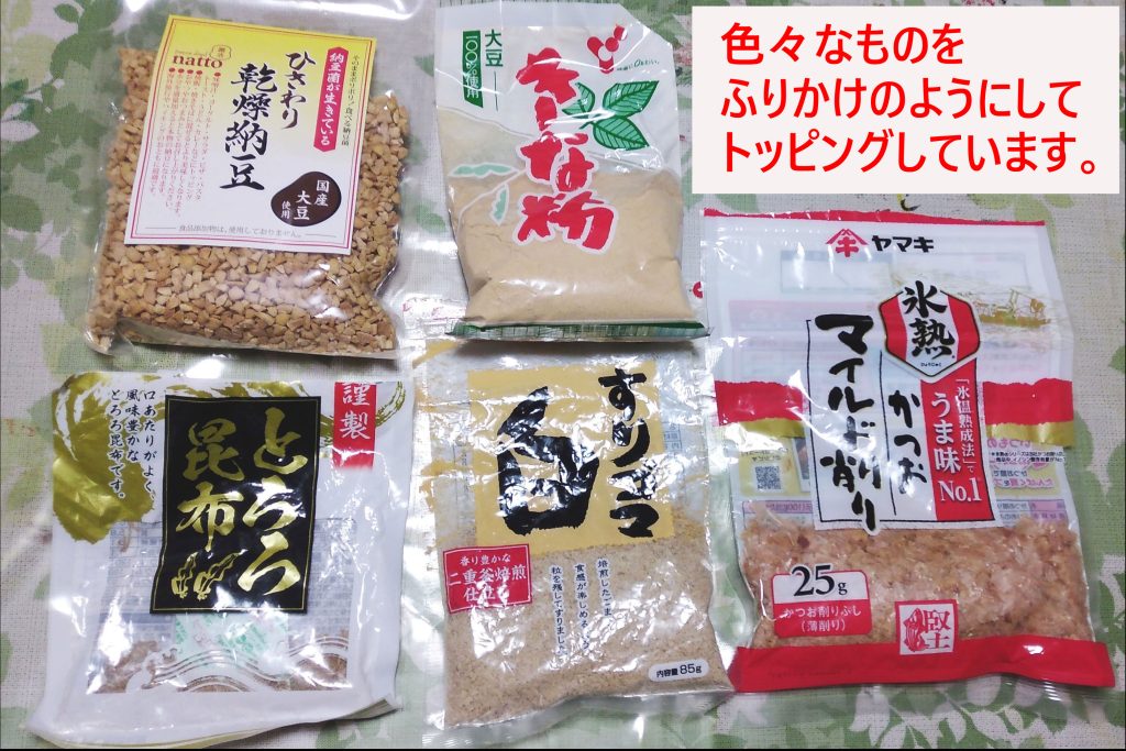 他にも、お湯で戻すだけの野菜やペット用の納豆、カツオ節を使ったり、手抜きを考えることも楽しくなってきました^^