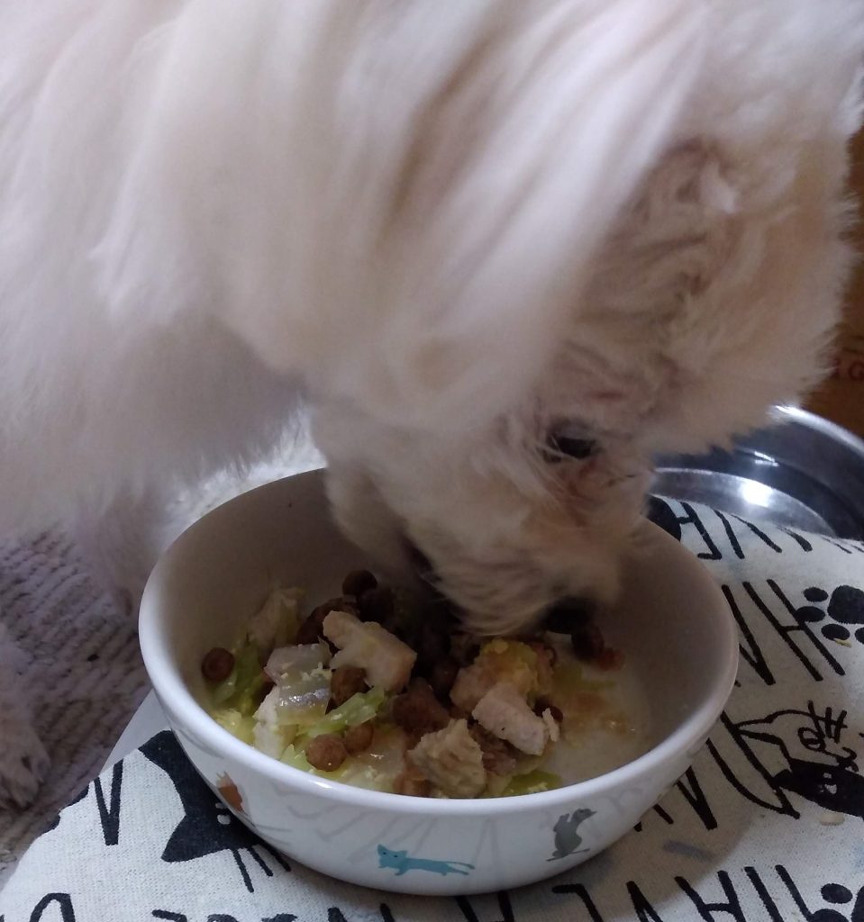 ただ、手作りご飯だけでは栄養面が心配だったので、カリカリも少し混ぜています。